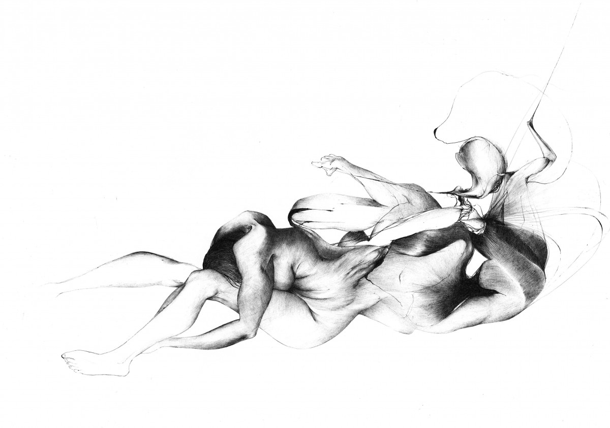 Mon travail porte essentiellement sur le Corps. Je parle du corps anatomique en tant que masse, chair périssable, matière, mais aussi du corps spirituel en tant qu’énergie et essence. Cela donne ces représentations de corps malmenés, en fusion, tantôt sous tension, tantôt lascifs, comme des plaies ouvertes sur les paysages de l’inconscient, car je m’adresse avant tout au sensitif, à l’âme et à ses abysses. Lorsque j’ai commencé à réaliser des figures d’animaux, je ne comprenais pas bien ce que je faisais (ça s’est passé dans une envie pressante et agressive, voire dans une sorte de panique) : j’avais besoin d’une violence dans le traitement qui s’est traduite par leur déformation et leur expression exacerbée, l’humain se faisant alors plus discret… Animaux ou humains, dans les deux cas des corps naissent, évoluent, s’accouplent ou se débattent dans un placenta de très grande tension : la transgression n’est jamais loin. Car c’est cela, ma quête : interroger l’impact de l’esprit sur le corps pour aller aux limites des forces qui nous régissent, dire la matière en osmose et en lutte avec le psychique.