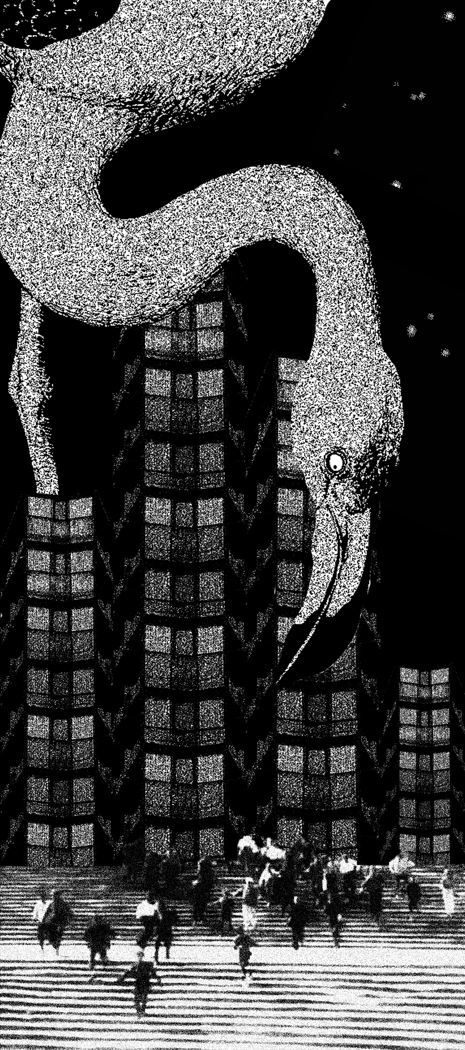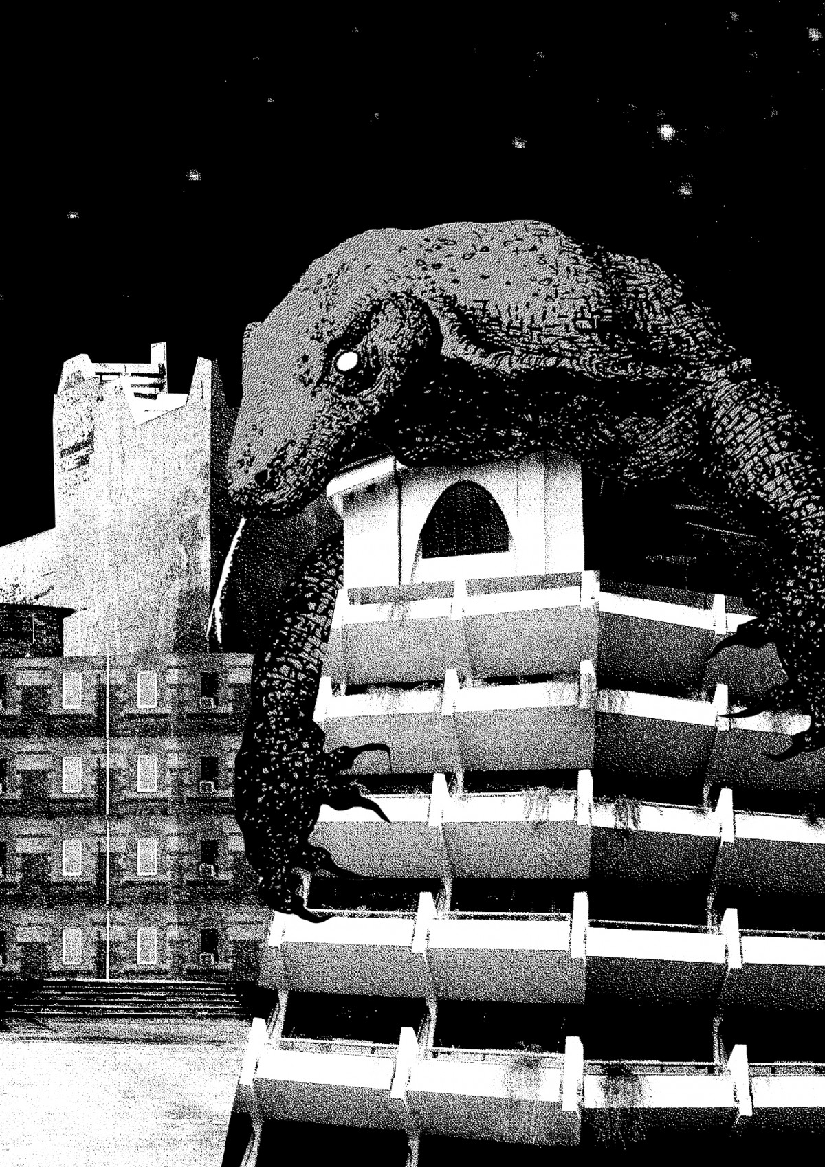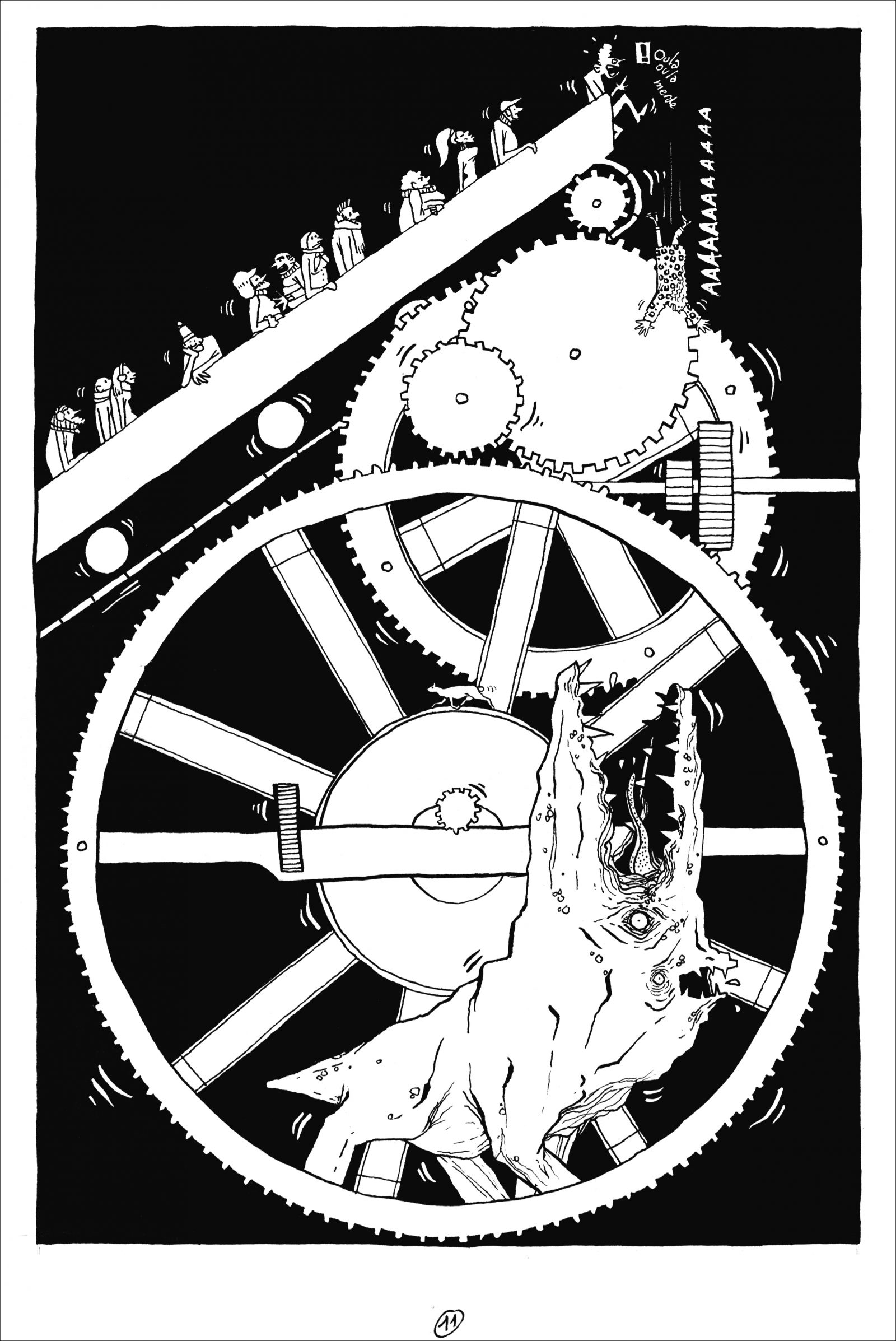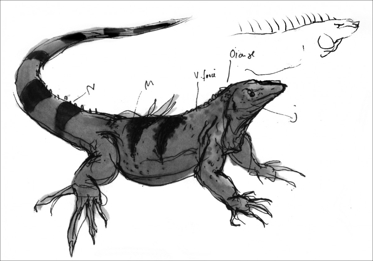 Les dessins présentés ici sont très souvent réalisés d’après des croquis issus d’observations. J’ai des connaissances assez précises sur le règne animal, et je m’approche d’une démarche naturaliste en portant une rigueur quasi-scientifique à ces dessins dans un premier temps. Mon interprétation graphique se libère dans une seconde phase. Animal(s) a été pour moi l’occasion d’approfondir ces études et de leur donner un nouveau souffle, une nouvelle lecture. Dès que l’on sort de l’anthropomorphisme et des animaux « vedettes » (Knut l’ourson, au hasard), ce thème permet de révéler des angoisses relatives au monde animal (violence, perte de contrôle, inconscience…). J’adore les films d’angoisse ou de série Z qui exploitent cette veine, avec un humour plus ou moins assumé : allez voir les affiches de Piranhas : les tueurs volants ou bien du Continent des hommes poissons, c’est assez fascinant… C’est ce que j’ai voulu mettre en image ici : l’animal monstrueux ou anxiogène, pas par ses qualités physiques que j’ai voulu retranscrire fidèlement, mais par sa démesure ou sa multitude.