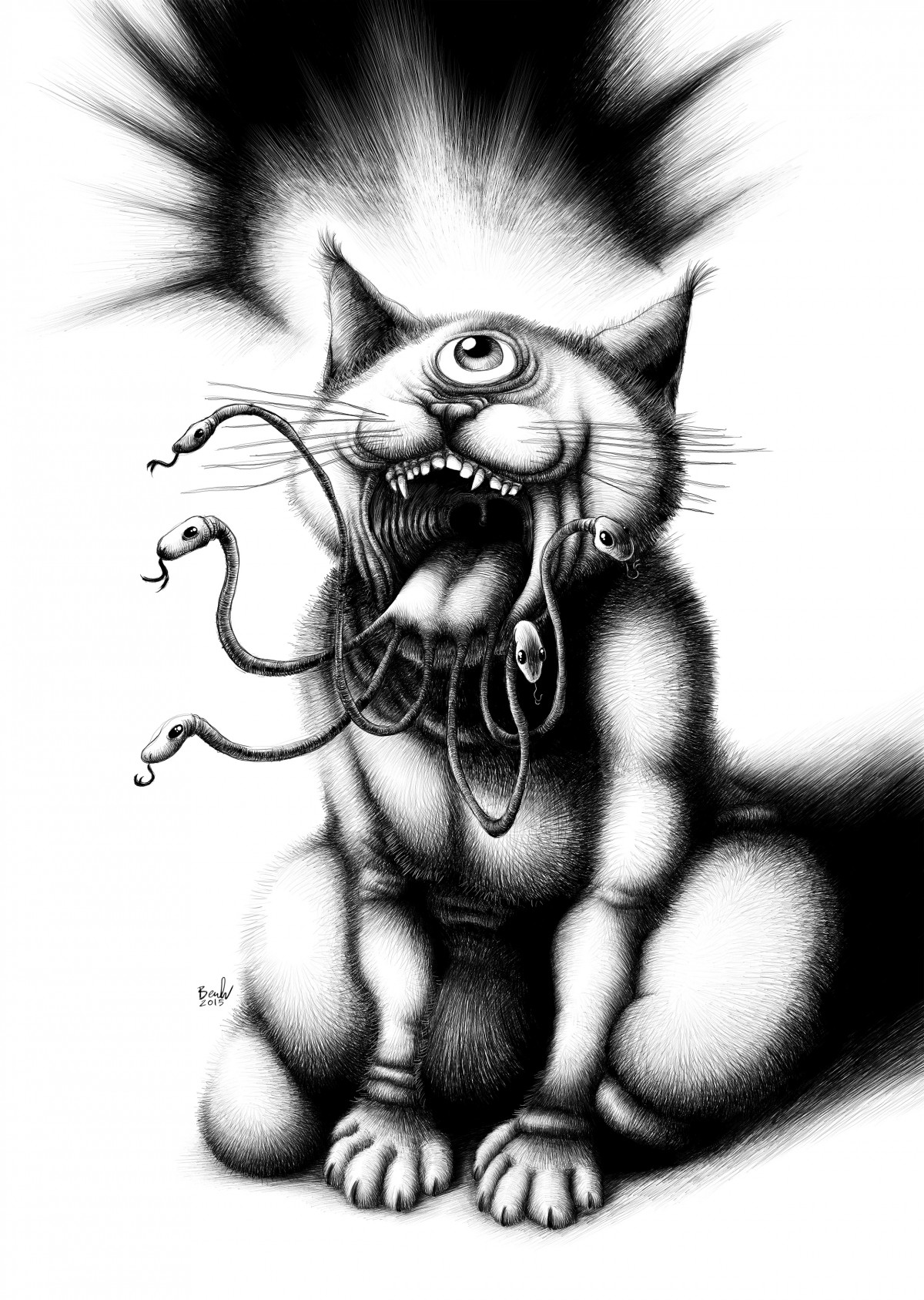 La plupart du temps je dessine, surtout pour des productions audiovisuelles (longs métrages, séries, documentaires, clips, courts, pubs…), en faisant du design, des storyboards, de l’animation 2D, du graphisme, de l’illustration, des pochettes de disques, des affiches, des visuels pour des vêtements… bref, plus ou moins tous supports et toutes demandes. Je fais aussi des fois des effets spéciaux et un peu de montage. Parfois c’est moi le réalisateur des films sur lesquels je travaille et aussi l’auteur scénariste, il faut donc que je sache écrire aussi (j’ai appris ça sur le tas), ce qui m’aide pas mal pour les bandes dessinées que je fais de temps en temps.