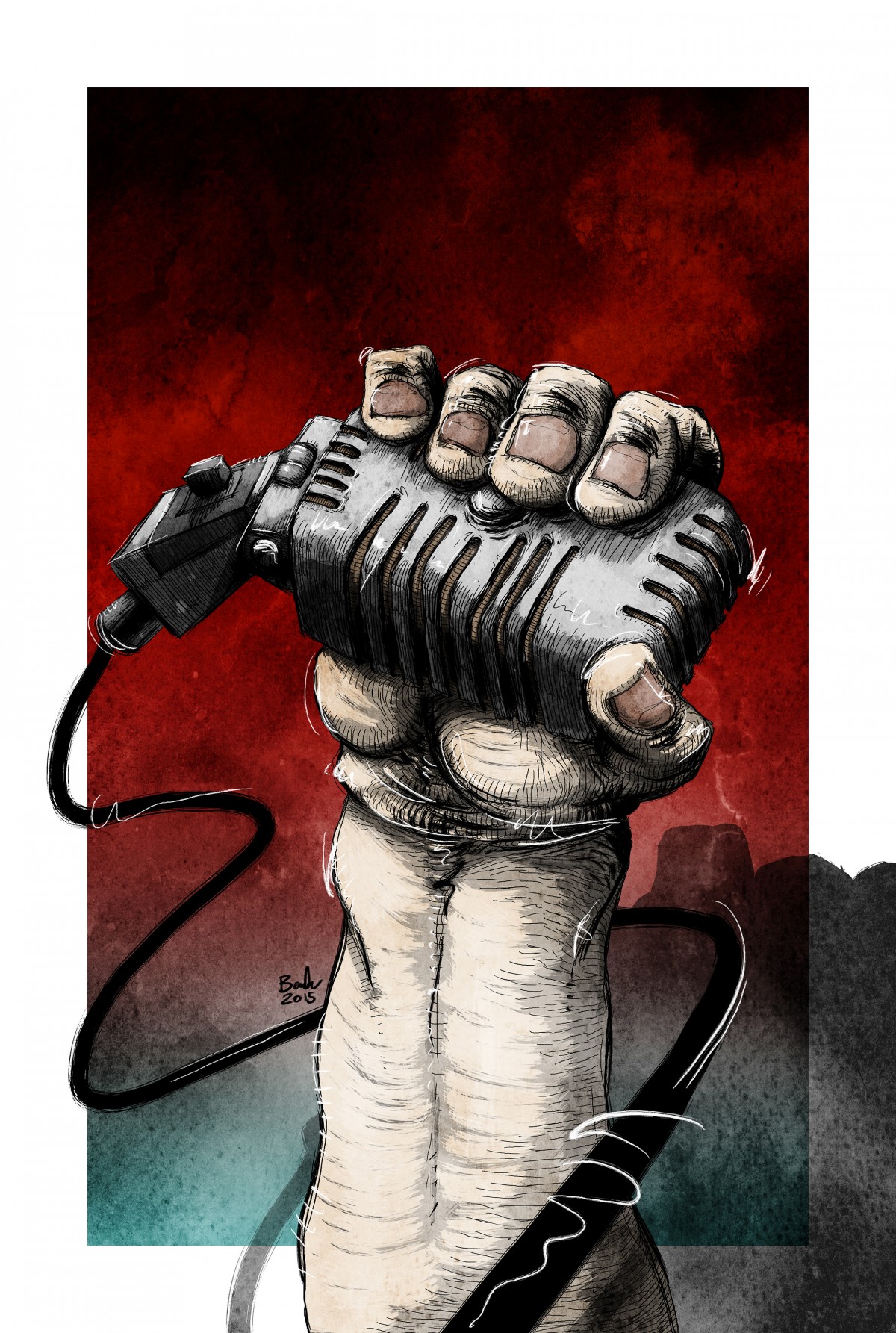 Mais mon truc, c’est avant tout le dessin. Lécher un trait pendant des heures, s’assurer du cadrage au millimètre près, avoir les bonnes couleurs, utiliser les bons outils, avoir le bon grain sur le papier, la bonne technique, le bon style graphique, avoir la bonne intention dans les doigts et dans la tête… pour faire passer l’émotion juste. Raconter quelque chose et faire passer des émotions en utilisant des images, c’est ça que je kiffe.