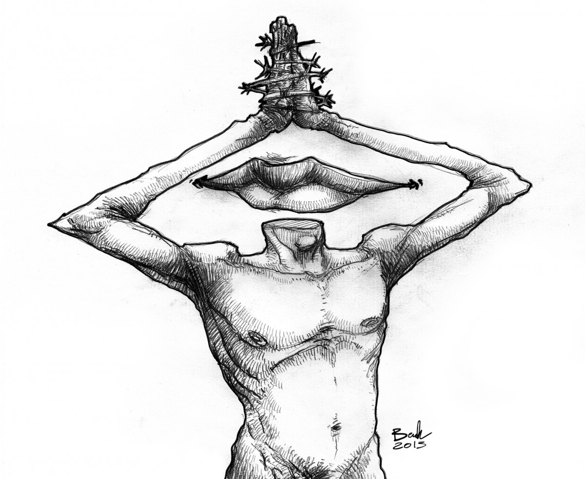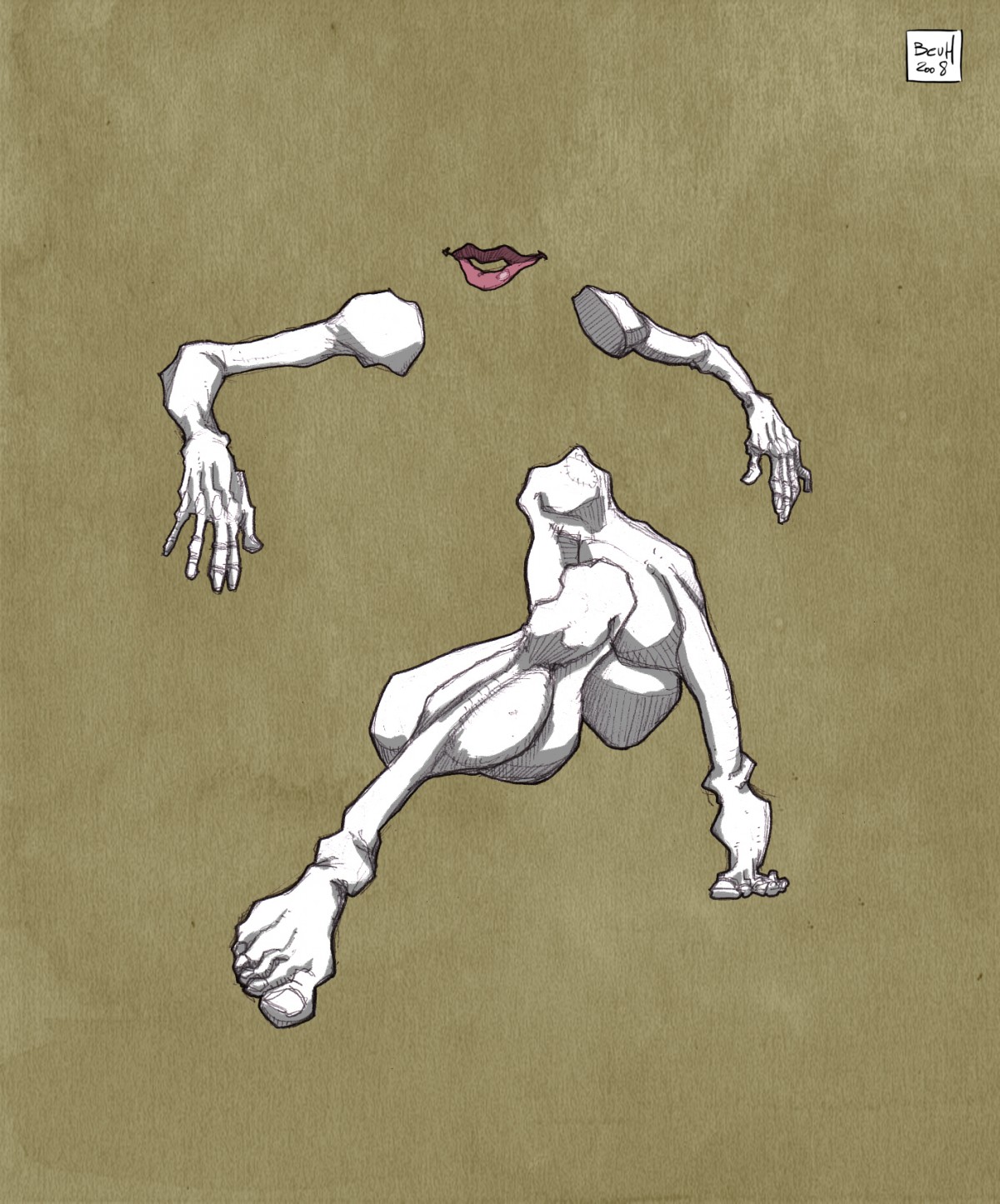 Au niveau des thèmes, je tourne souvent autour des mêmes : le passage à l’acte (ou son contraire), la sexualité, les différences entre besoin et envie, la violence, la frustration, les pulsions… des choses très sentimentales au fond, dans le sens où ça parle d’émotions et du résultat qui en découle dans une société (la nôtre en général). Mais je fais aussi très souvent des trucs complètement idiots voire franchement graveleux… Disons que je suis autant fan d’Ingmar Bergman que de Mel Brooks.