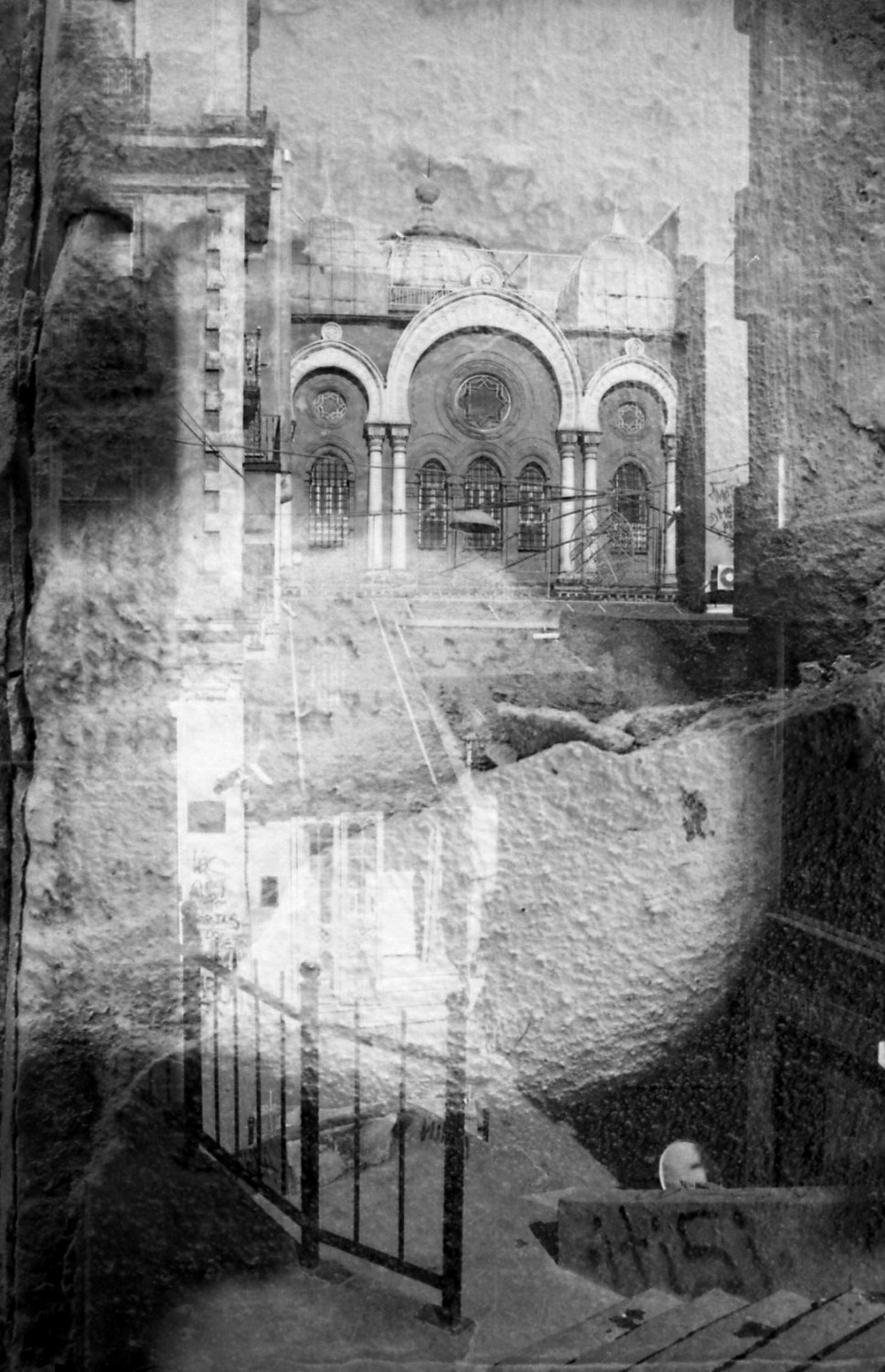 J’ai débuté la photographie en prenant des groupes de rock et électro en photo, après ma licence d’histoire, j’ai commencé à sillonner l’Europe Centrale, Balkanique puis Orientale, j’ai appris à peaufiner mes cadrages, de paysages de cartes postales lors de mes errances urbaines, je suis venu peu à peu à la superposition, vers 2007 en Roumanie et en Turquie. Mon seul et unique compagnon de route était mon canon EOS 300, ma démarche photographique est essentiellement liée à la superposition de deux photographies sur un même négatif , je me nourris de mon environnement, de mes errances urbaines : un premier cliché qui créera la forme abstractive et le second cliché qui définira cette concrétisation du réel, deux clichés qui doivent n’en faire qu’un : l’identification spatiale amène à un cheminement par lequel le spectateur doit décrypter des architectures abstraites, des univers oniriques. Je ne superpose pas deux photographies au hasard, je puise dans mon inconscient pour définir une réalité dégradée et sublimée. La méta-fiction doit plonger le spectateur dans un monde déformé, parallèle, indéfinie hors du temps. Ma démarche ne retrace pas un univers anthropologique mais plutôt une quête post-humaine, mes photographies forment un rêve habité, sans frontières, sans limites… la juxtaposition photographique génère un continuum mutant, une jonction dystopique bâtit sur une analyse irrationnelle. La substantification de l’image construit une perceptibilité de la matière, face à la désintégration du réel la mutation photographique invite le spectateur à une lecture de l’image désorganisée vers un ailleurs incertain…