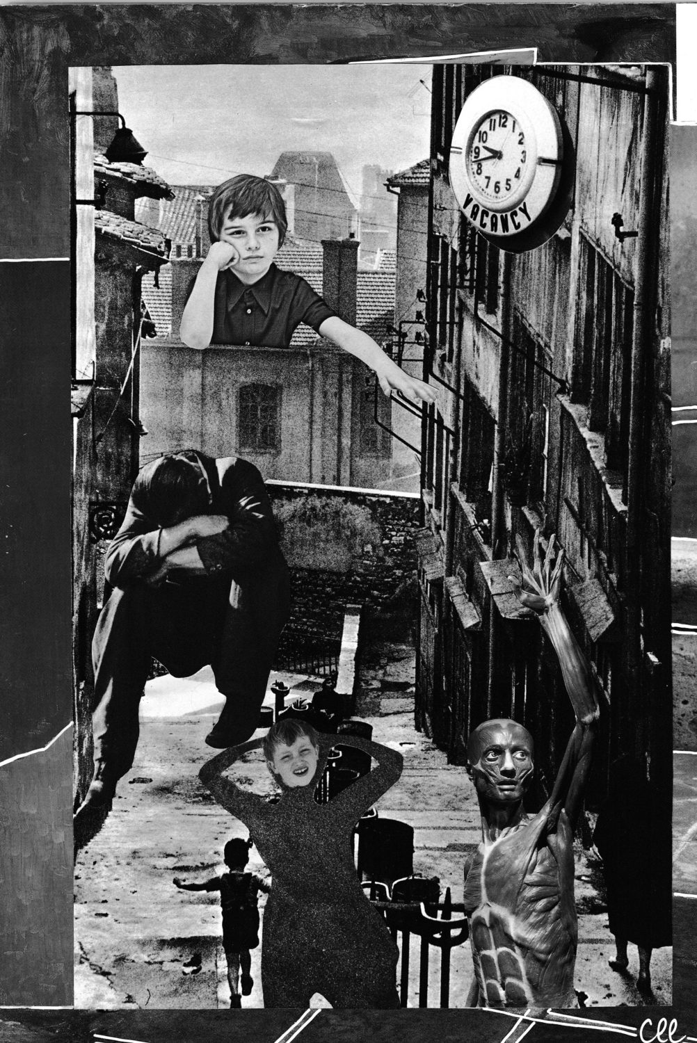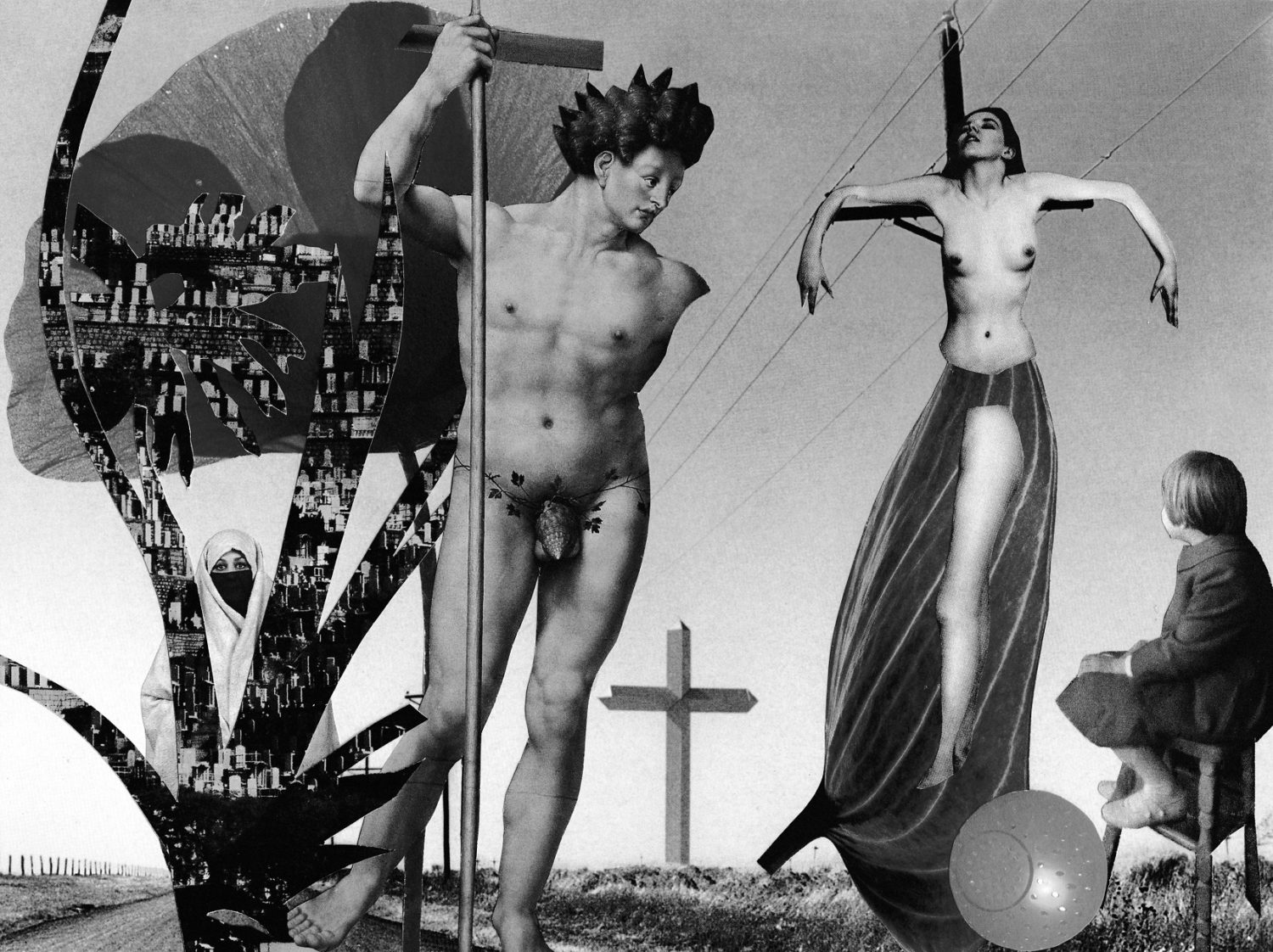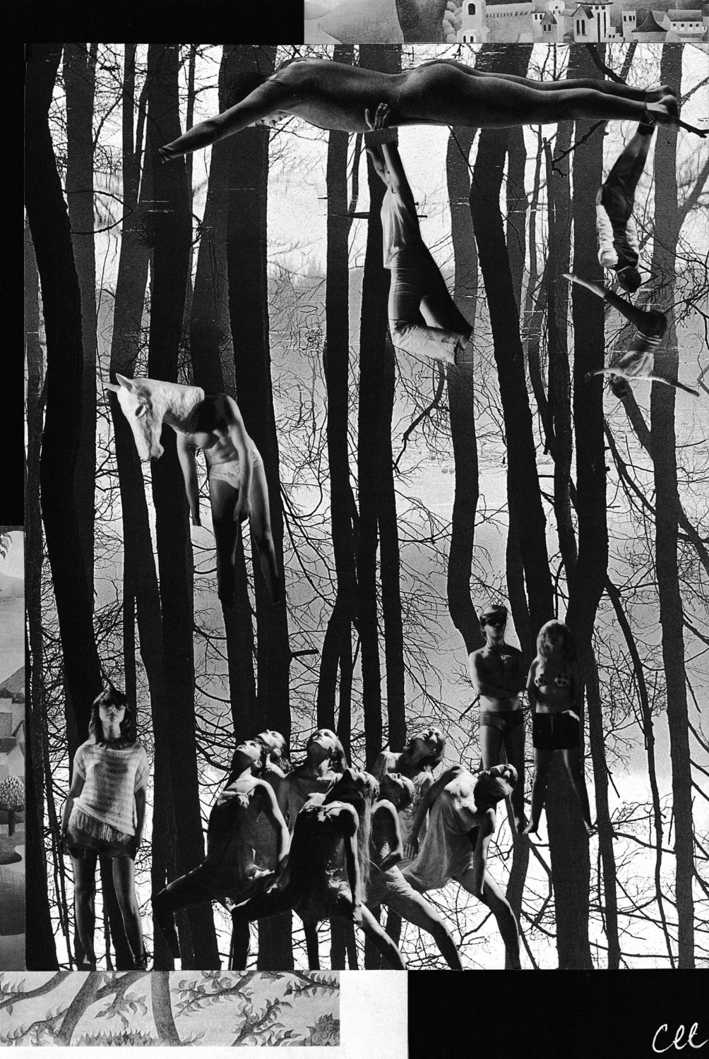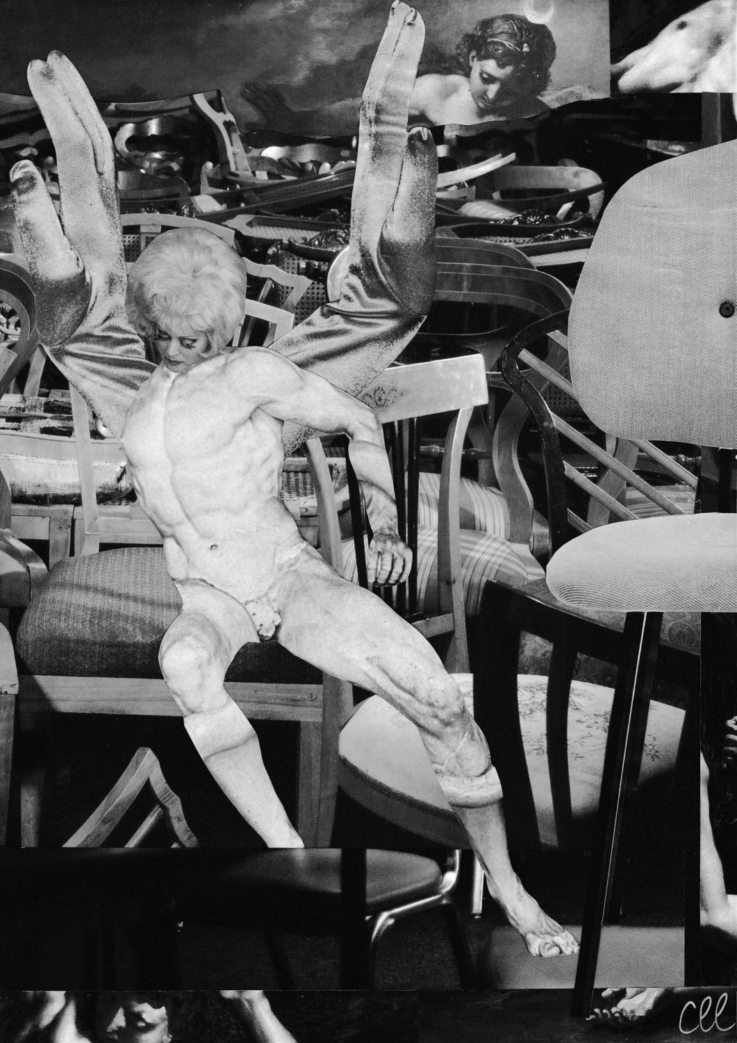 Par nature le collage est impur ; hétérogène, hétéroclite, composite hybride, mêlé. Le collage « à la main » est opérer des gestes tout proches d’écrire, c’est-à-dire redire disjoindre, morceler, séparer, puis ou depuis ou dans un même mouvement rejoindre, lier, synthétiquement installer ailleurs, placer quelques parts, arranger (entre eux) des petits ensembles. Réparer peut-être des lieux des êtres. Il aura fallu déplacer/se déprendre des choses, perspectives, corps, totalement ou en partie, déployer les doigts qu’ils précisent ; comme ce serait une espèce de chirurgie plastique je fais attention. L’impur est dit altéré par la présence d’éléments étrangers, composés de sangs différents, indésirables ? Des dialectiques m’ont travaillée, traversées de l’impur/pur ; puissiez-vous les apprécier.